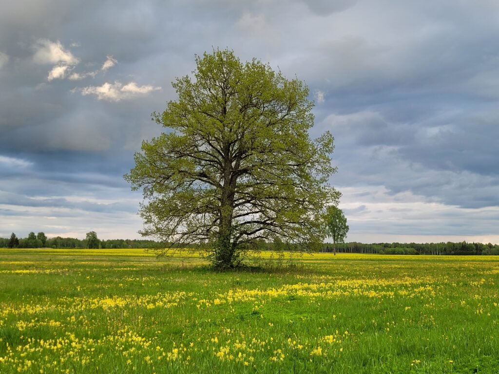 An old oak tree in the middle of a field, where buttercups bloom and rapeseed stretches in the distance makes you feel that a single person born into this world can handle anything.